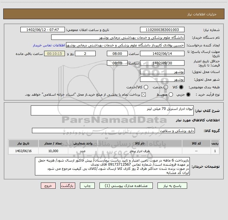 نام دستگاه خریدار:دانشگاه علوم پزشکی و خدمات بهداشتی درمانی بوشهر