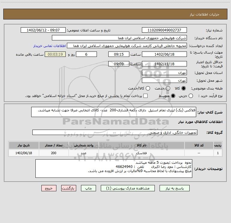 نام دستگاه خریدار:شرکت هواپیمایی جمهوری اسلامی ایران هما