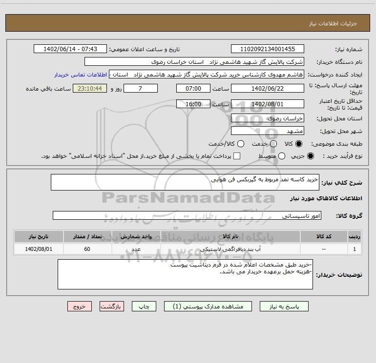 نام دستگاه خریدار:شرکت پالایش گاز شهید هاشمی نژاد استان خراسان رضوی