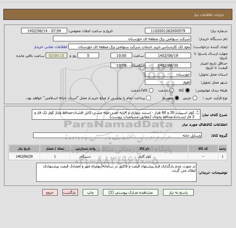 نام دستگاه خریدار:شرکت سهامی برق منطقه ای خوزستان