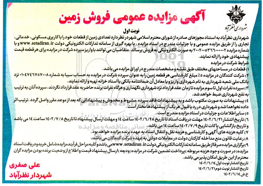 مزایده فروش تعدادی از قطعات با کاربری مسکونی ، خدماتی ، تجاری