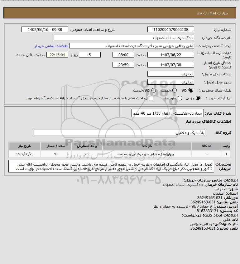 شرح کلی نیاز: چهار پایه پلاستیکی ارتفاع 1/10 متر 40 عدد