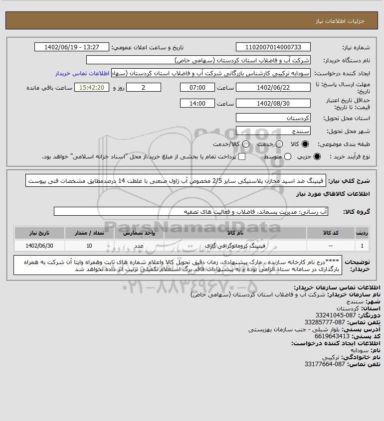 نام سازمان خریدار: شرکت آب و فاضلاب استان کردستان (سهامی خاص)