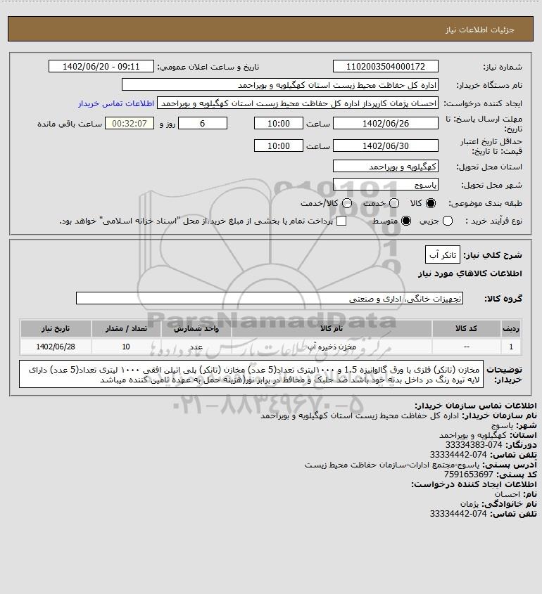 نام دستگاه خریدار:اداره کل حفاظت محیط زیست استان کهگیلویه و بویراحمد