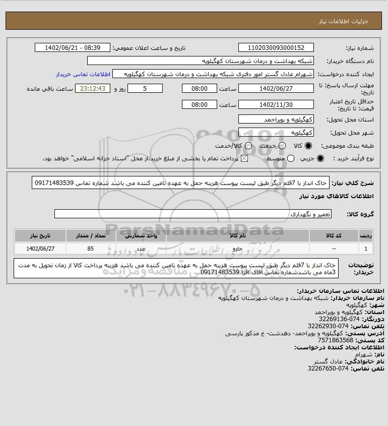 نام سازمان خریدار: شبکه بهداشت و درمان شهرستان کهگیلویه