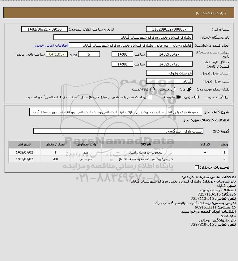 شرح کلی نیاز: مجموعه بازی پلی اتیلن مناسب جهت زمین بازی طبق استعلام پیوست