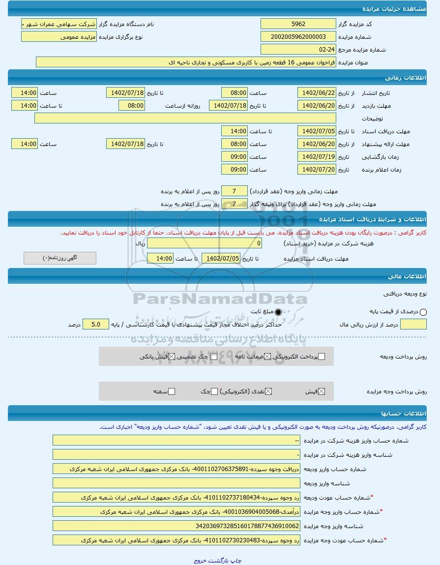 | شماره حساب عودت وجه مزایده | 342036973285160178877436910062 |