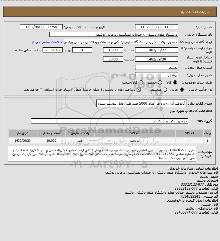 نام دستگاه خریدار:دانشگاه علوم پزشکی و خدمات بهداشتی درمانی بوشهر