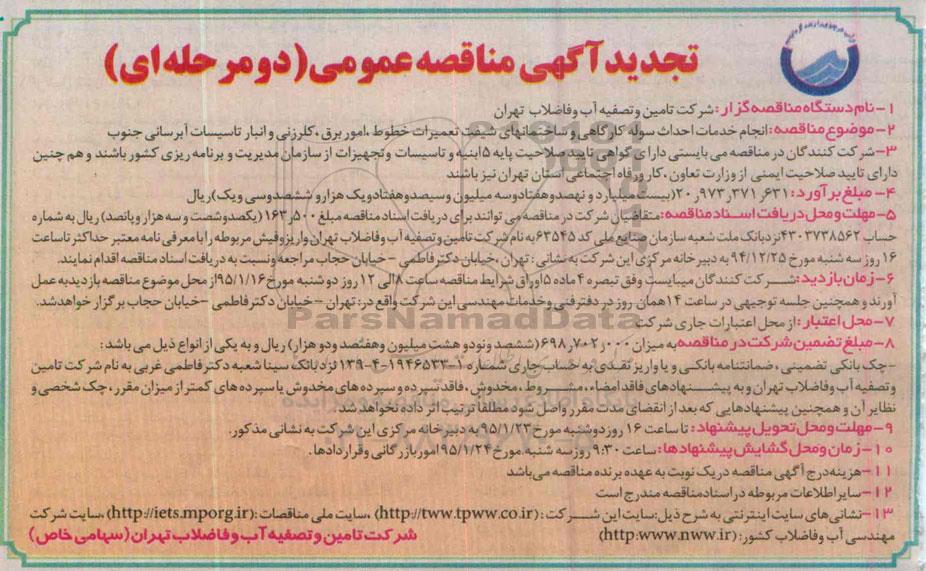 تجدید آگهی مناقصه عمومی (دو مرحله ای )