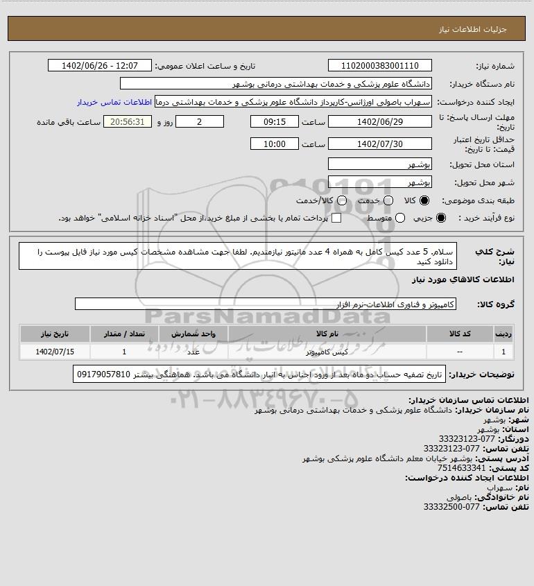 نام دستگاه خریدار:دانشگاه علوم پزشکی و خدمات بهداشتی درمانی بوشهر