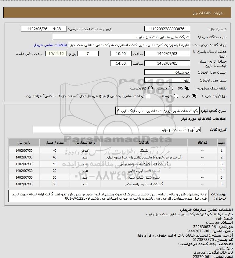 نام دستگاه خریدار:شرکت ملی مناطق نفت خیز جنوب