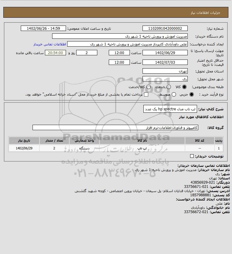 نام دستگاه خریدار:مدیریت اموزش و پرورش ناحیه 1 شهر ری