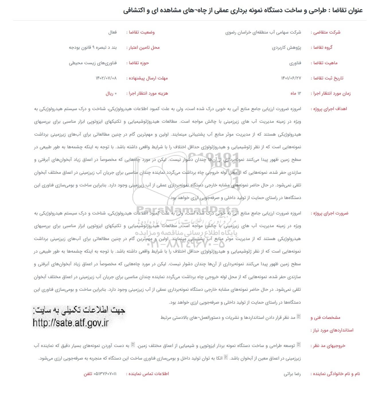 فراخوان طراحی و ساخت نمونه برداری عمقی از چاه های مشاهده ای و اکتشافی, فراخوان طراحی و ساخت نمونه برداری عمقی از چاه های مشاهده ای و اکتشافی