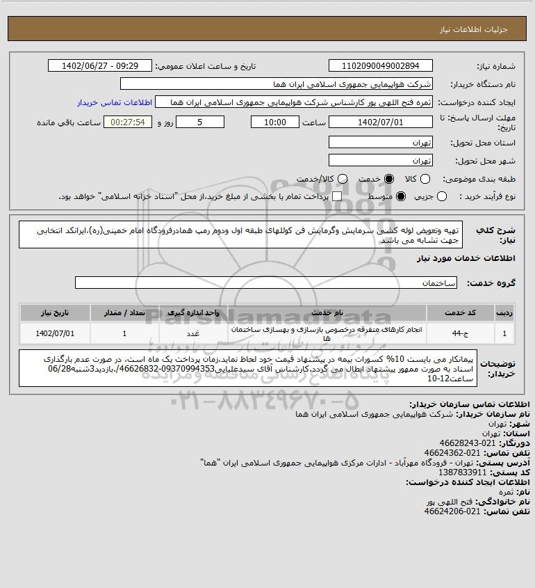 استعلام تهیه وتعویض لوله کشی سرمایش وگرمایش فن کوئلهای طبقه اول ودوم رمپ همادرفرودگاه امام خمینی(ره)،ایرانکد انتخابی جهت تشابه می باشد, استعلام تهیه وتعویض لوله کشی سرمایش وگرمایش فن کوئلهای طبقه اول ودوم رمپ همادرفرودگاه امام خمینی(ره)،ایرانکد انتخابی جهت تشابه می باشد