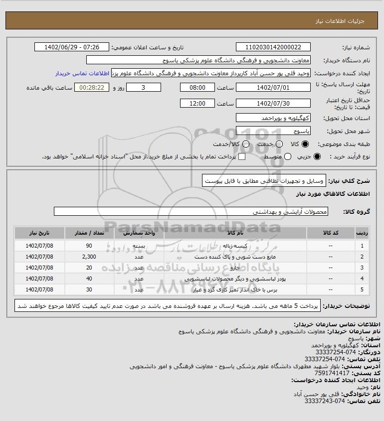 نام دستگاه خریدار:معاونت دانشجویی و فرهنگی دانشگاه علوم پزشکی یاسوج