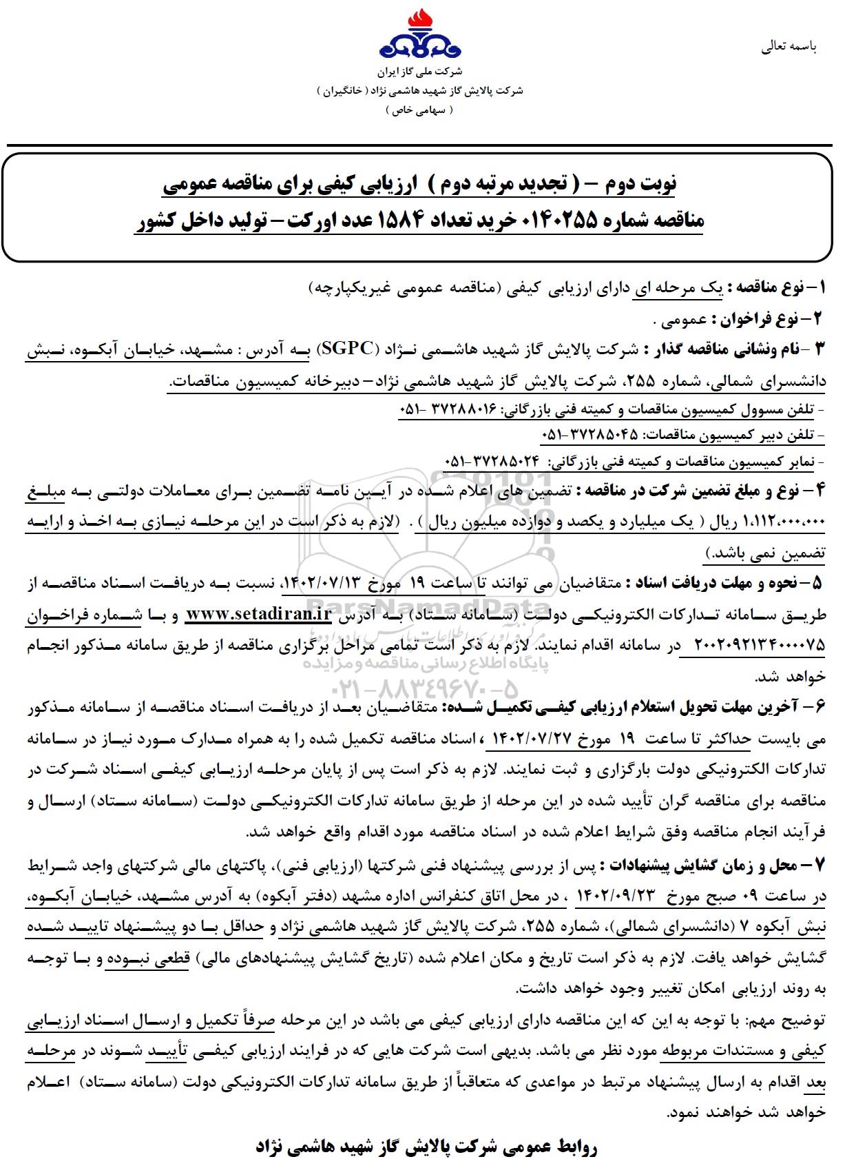 نوبت دوم - (تجدید مرتبه دوم) ارزیابی کیفی برای مناقصه عمومی