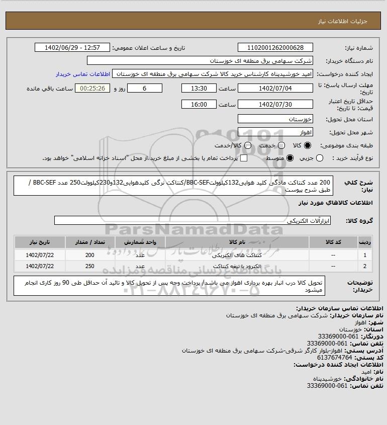 | 1 | -- | کنتاکت های الکتریکی | عدد | 200 | 1402/07/22 |