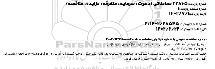 تجدید مناقصه عمومی با شماره فراخوان سامانه ستاد 2002094996000040 ؟