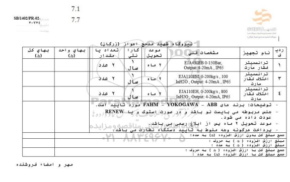 | 1 | ترانسمیتر فشار مارت | 2 ماه |