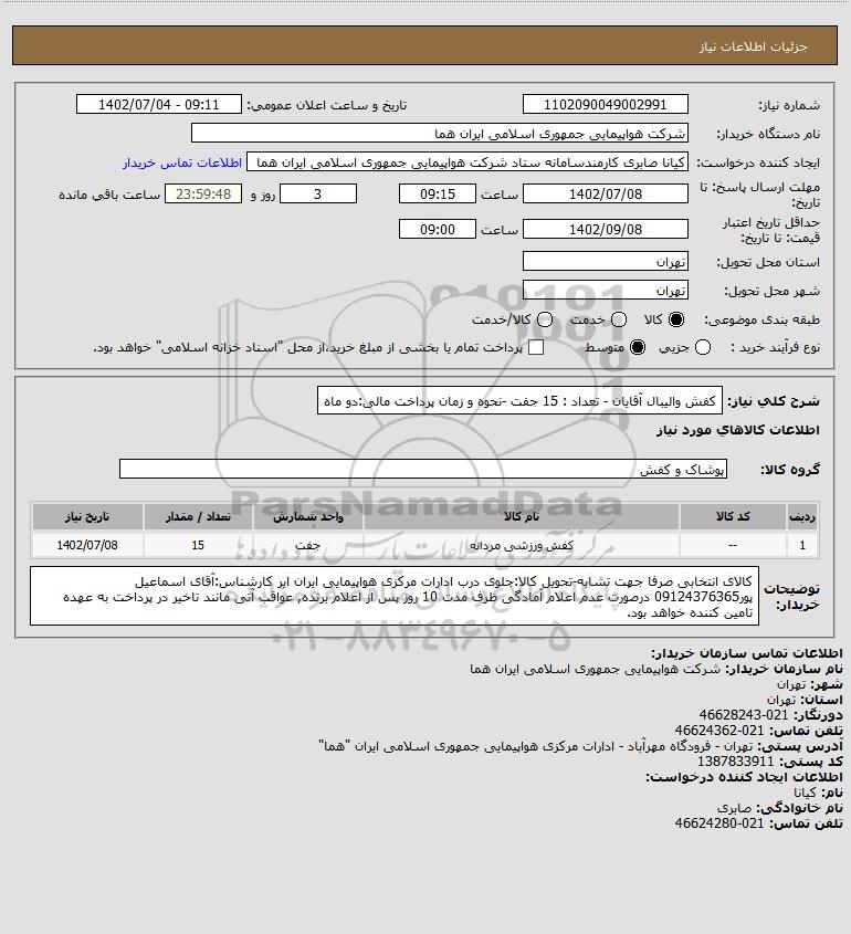 نام سازمان خریدار: شرکت هواپیمایی جمهوری اسلامی ایران هما