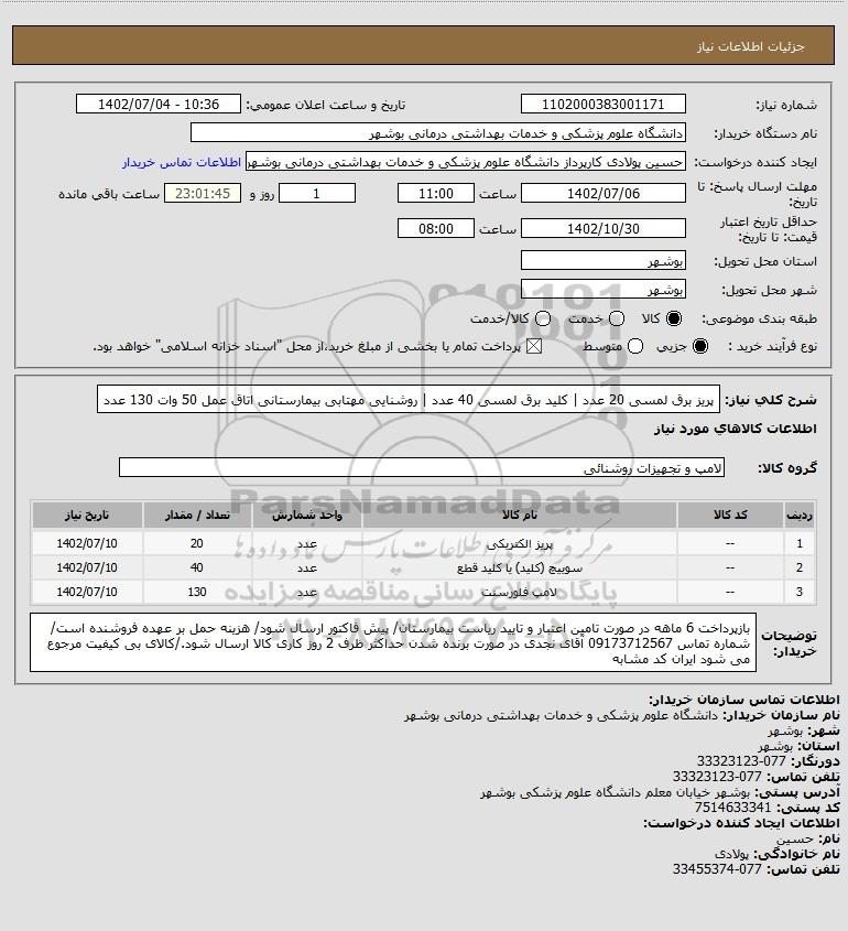 نام دستگاه خریدار:دانشگاه علوم پزشکی و خدمات بهداشتی درمانی بوشهر