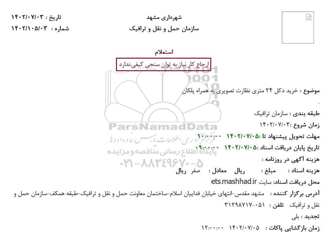 زمان بازگشایی پاکات :1402.7.5 ساعت 12