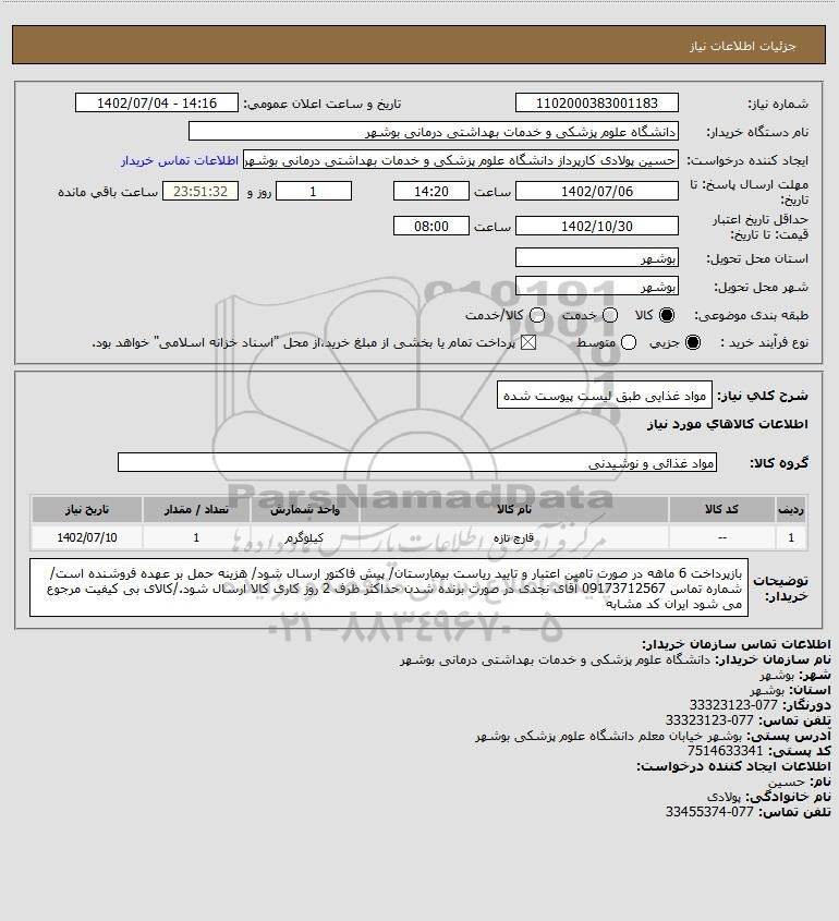 نام سازمان خریدار: دانشگاه علوم پزشکی و خدمات بهداشتی درمانی بوشهر