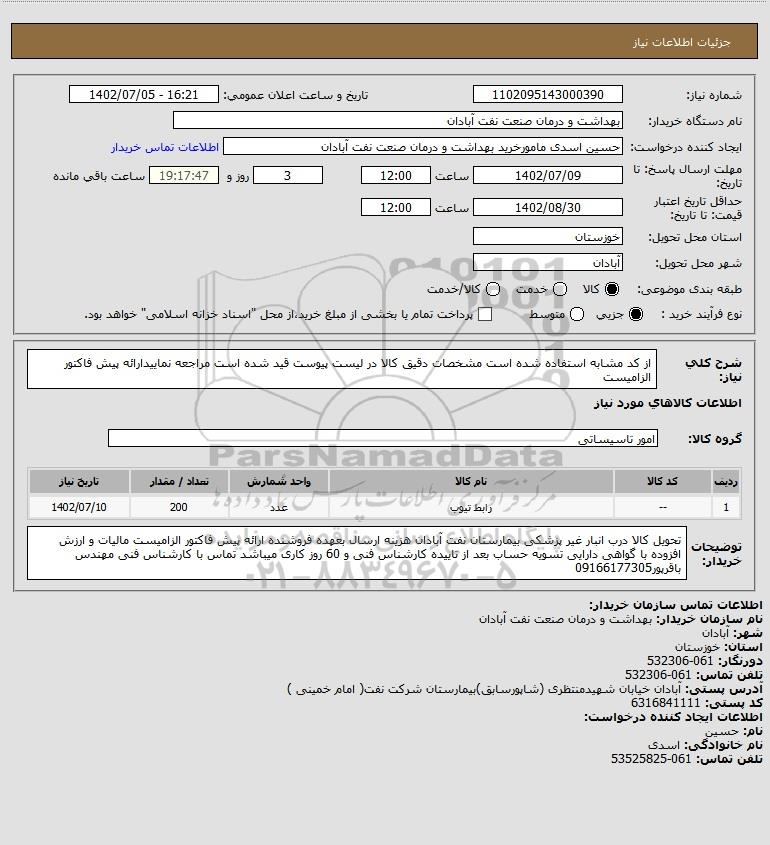 نام دستگاه خریدار:بهداشت و درمان صنعت نفت آبادان