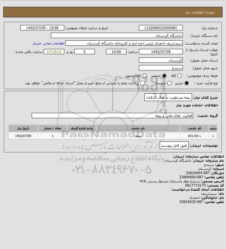 شرح کلی نیاز: بیمه مسئولیت در قبال کارکنان