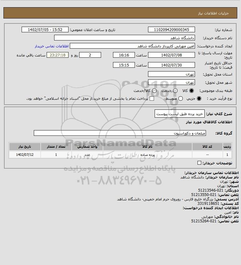 شرح کلی نیاز: خرید پرده طبق لیست پیوست