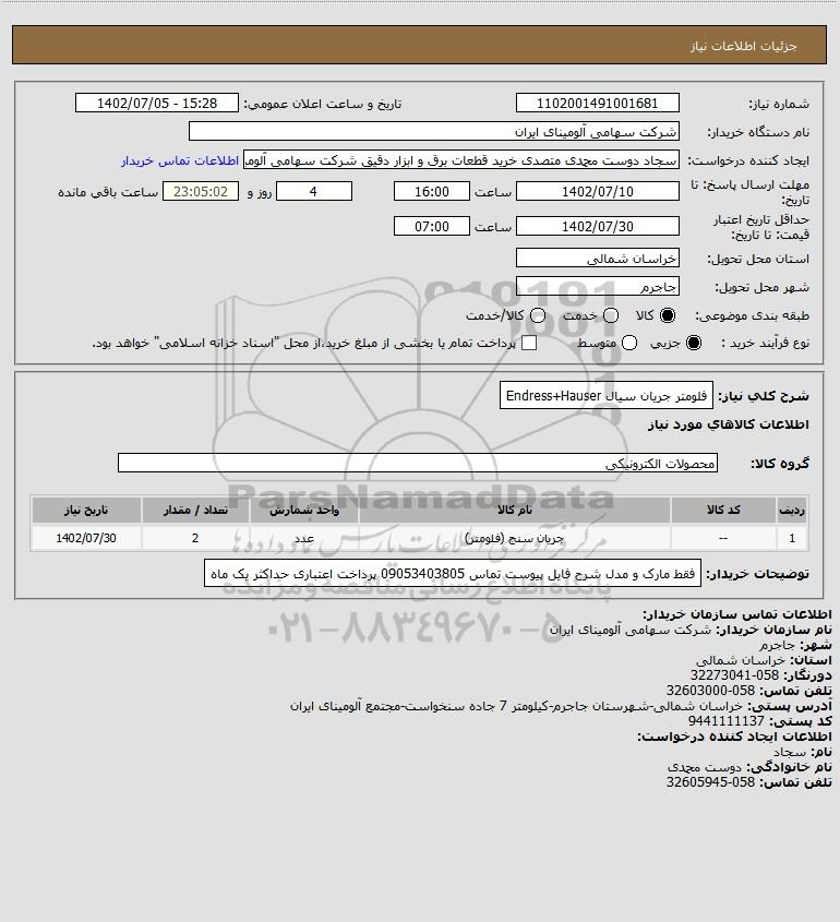 شرح کلی نیاز: فلومتر جریان سیال Endress+Hauser