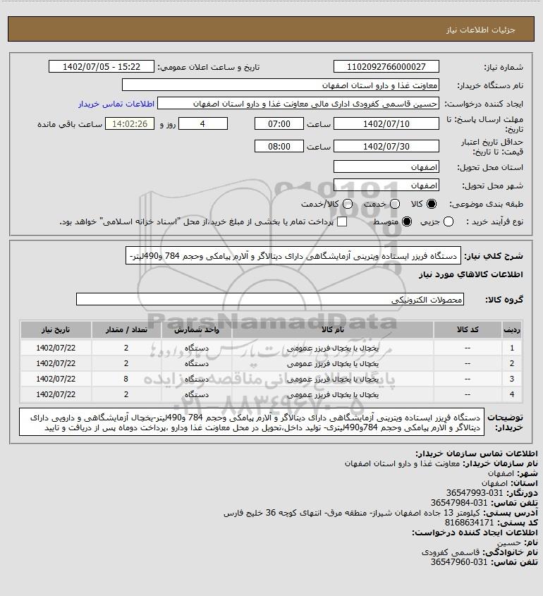 نام دستگاه خریدار:معاونت غذا و دارو استان اصفهان