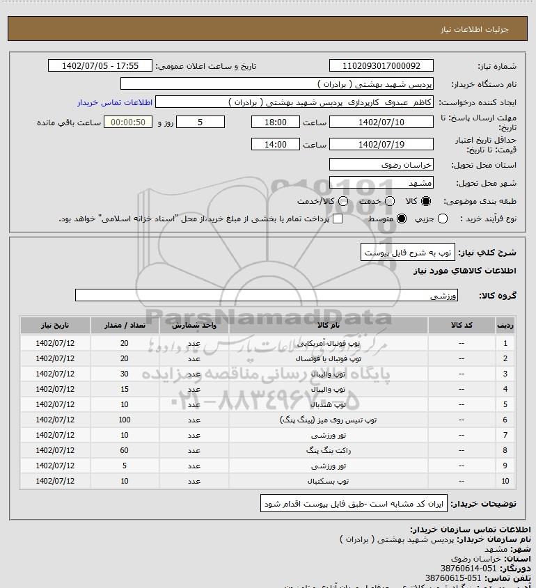 استعلام توپ به شرح فایل پیوست, استعلام توپ به شرح فایل پیوست