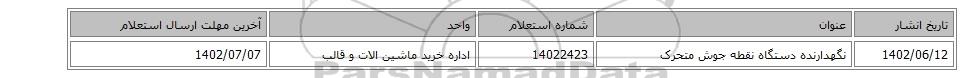 1402/06/12نگهدارنده دستگاه نقطه جوش متحرک14022423اداره خرید ماشین الات و قالب1402/07/07