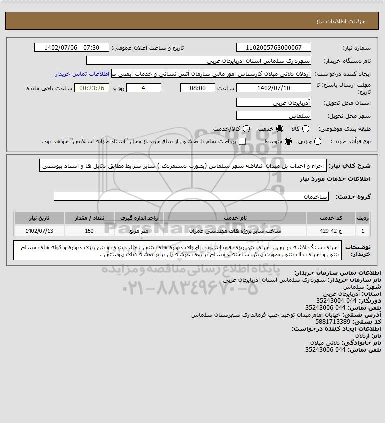 شرح کلی نیاز: اجراء و احداث پل میدان انتفاضه شهر سلماس (بصورت دستمزدی ) سایر شرایط مطابق دتایل ها و اسناد پیوستی