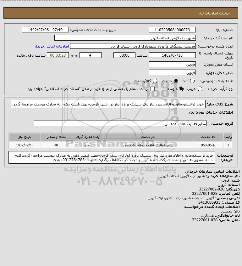 نام دستگاه خریدار:شهرداری قزوین استان قزوین
