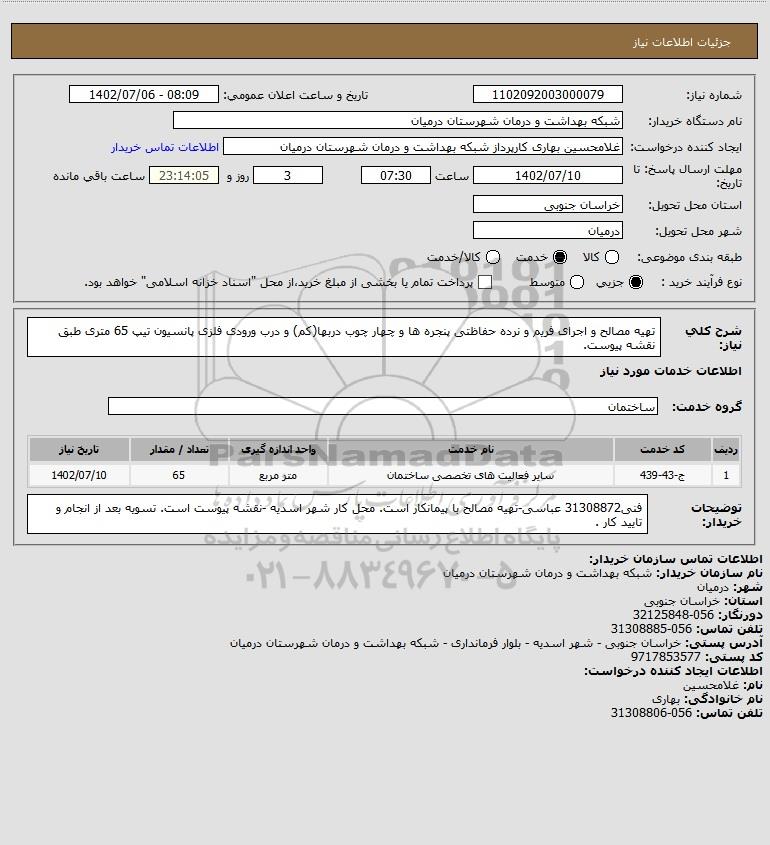 نام دستگاه خریدار:شبکه بهداشت و درمان شهرستان درمیان