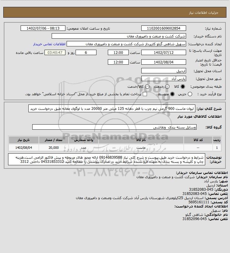 نام دستگاه خریدار:شرکت کشت و صنعت و دامپروری مغان