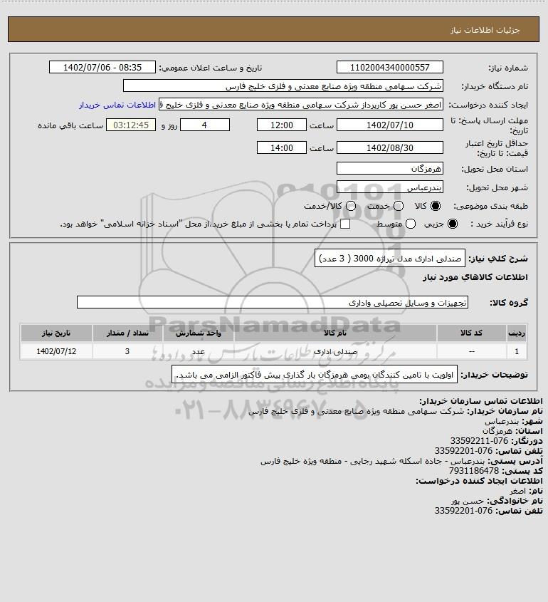 توضیحات خریدار:اولویت با تامین کنندگان بومی هرمزگان بار گذاری پیش فاکتور الزامی می باشد.