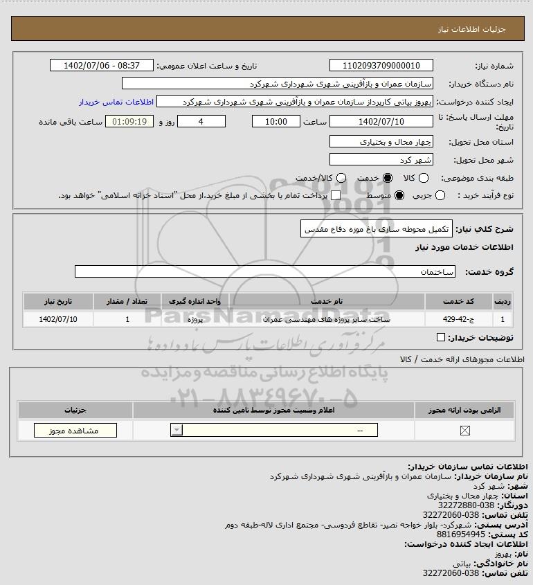 نام دستگاه خریدار:سازمان عمران و بازآفرینی شهری شهرداری شهرکرد