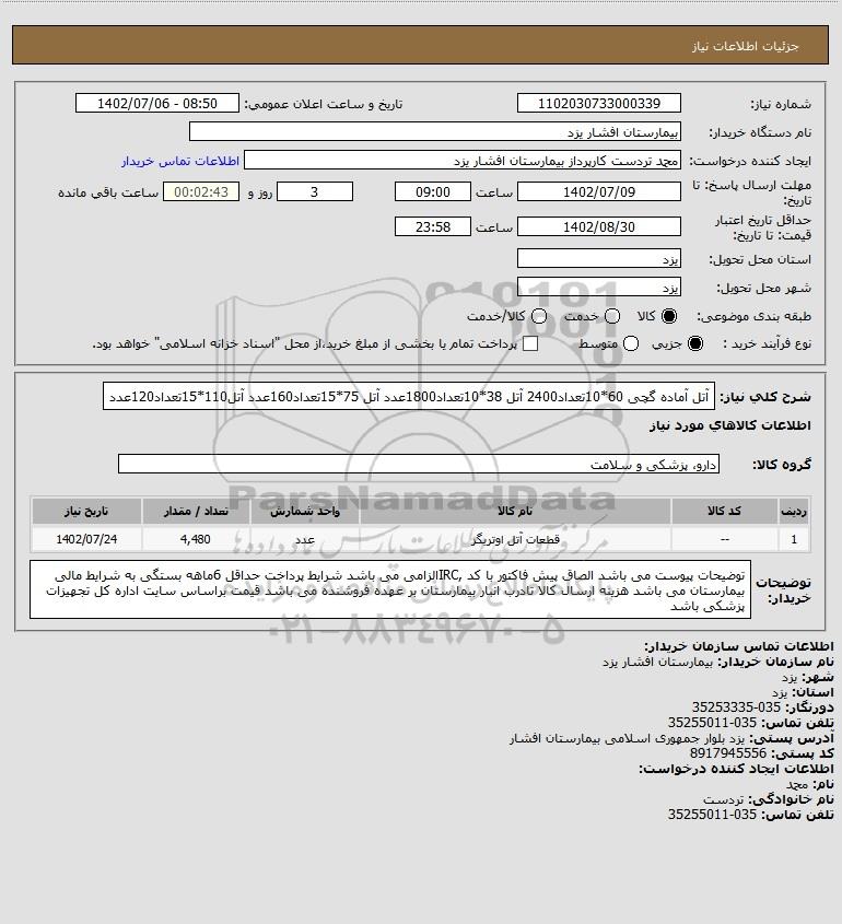 نام دستگاه خریدار:بیمارستان افشار یزد