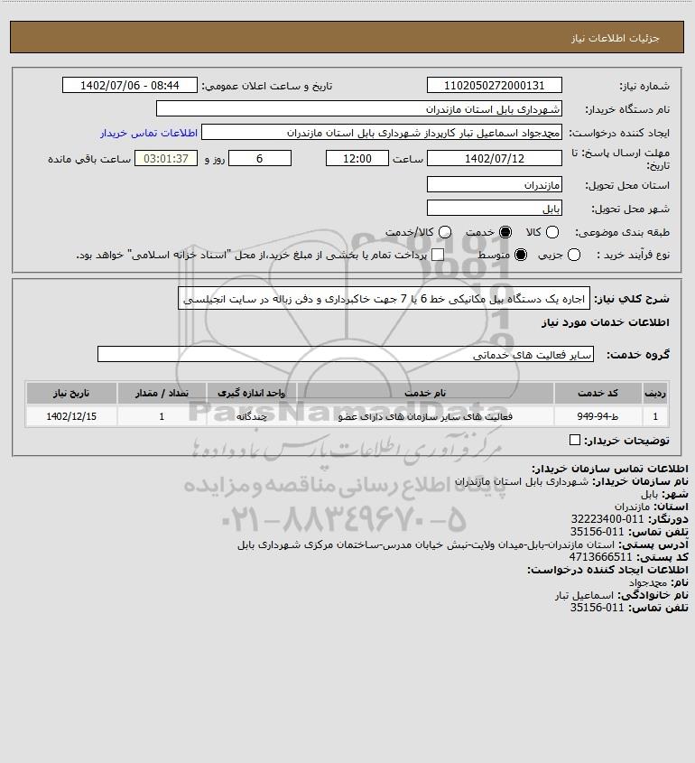 نام دستگاه خریدار:شهرداری بابل استان مازندران