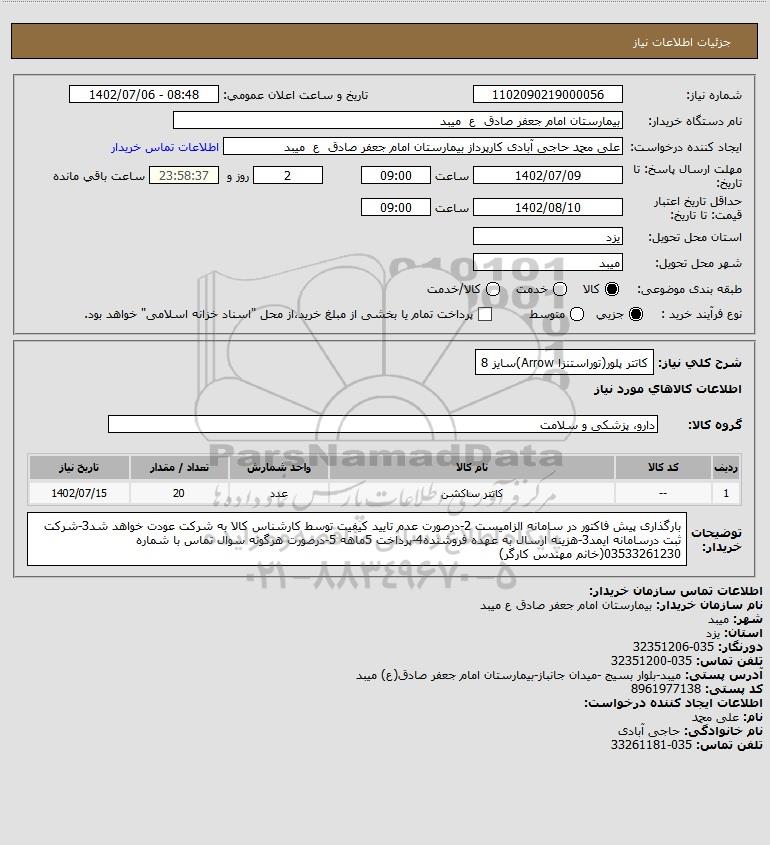 | 1 | -- | کاتتر ساکشن | عدد | 20 | 1402/07/15 |