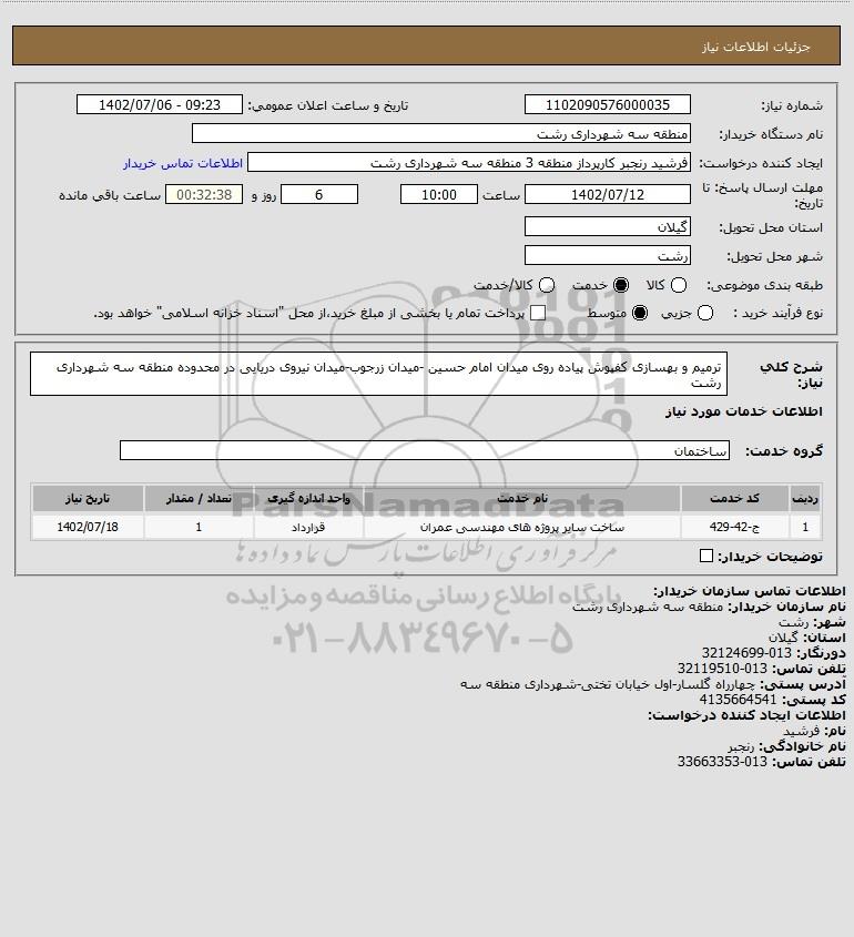 نام سازمان خریدار: منطقه سه شهرداری رشت