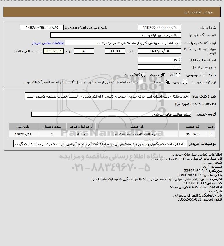 نام دستگاه خریدار:منطقه پنج شهرداری رشت