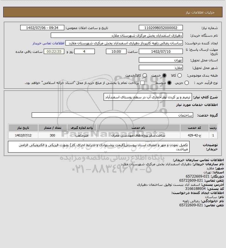 استعلام ترمیم و پر کردن نوار حفاری آب در سطح روستای اسفندآباد, استعلام ترمیم و پر کردن نوار حفاری آب در سطح روستای اسفندآباد