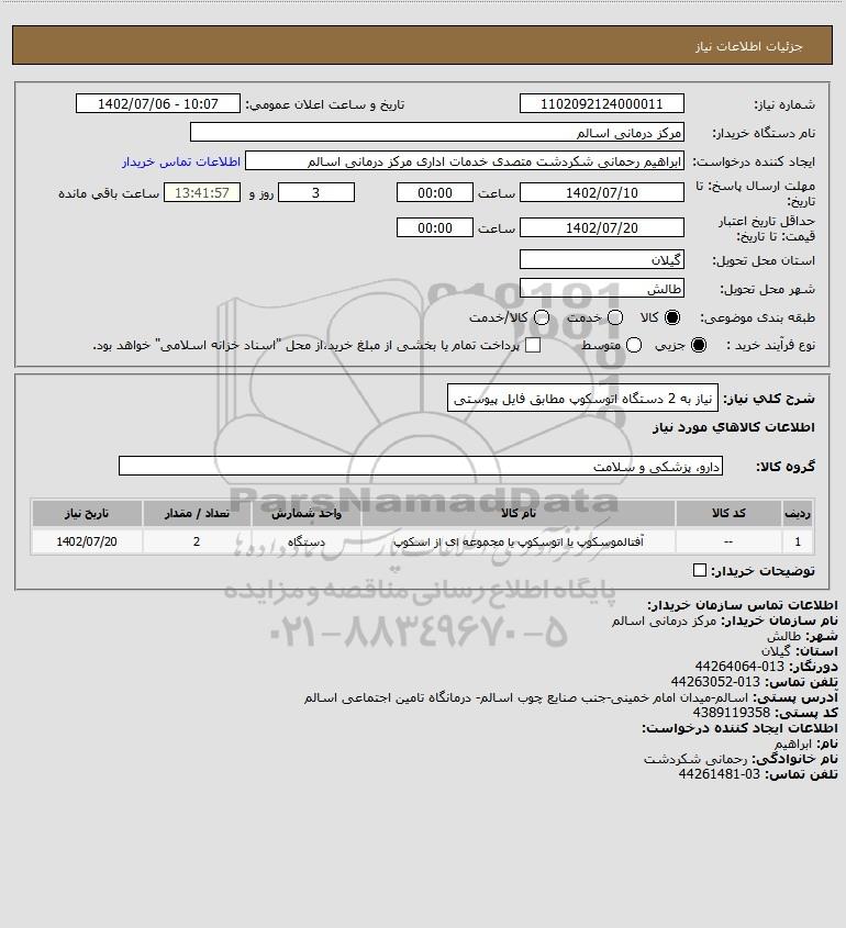 شرح کلی نیاز: نیاز به 2 دستگاه اتوسکوپ مطابق فایل پیوستی
