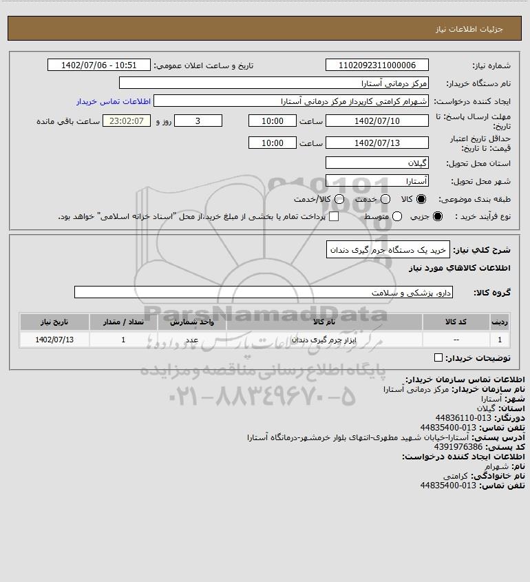 نام دستگاه خریدار:مرکز درمانی آستارا