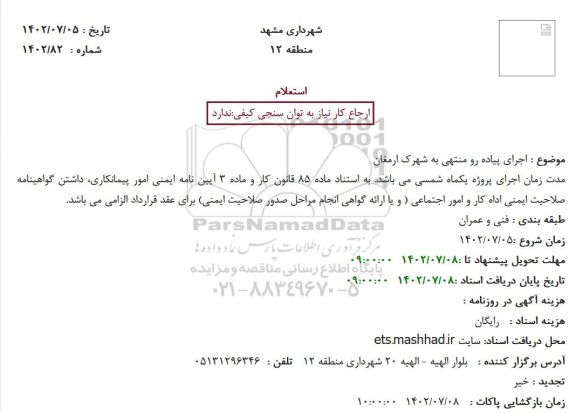 زمان بازگشایی پاکات : 1402.7.8 10:00