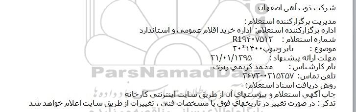 اداره برگزارکننده استعلام: اداره خرید اقلام عمومی و استاندارد